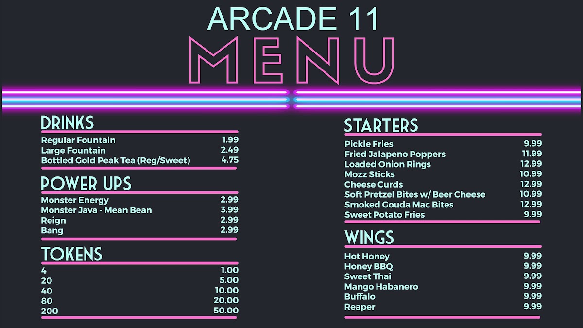 Arcade 11 Bar & Restaurant Menu (Update 2025)